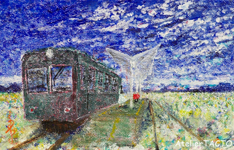 旅の途中、打ち捨てられた小さな電車に出会いました。その電車は人々に忘れられてからもずっとお客を待ち続けていたようです。私が近付くと、かすかに身じろぎし、ライトやガラスが心なしか輝きを取り戻したようです。