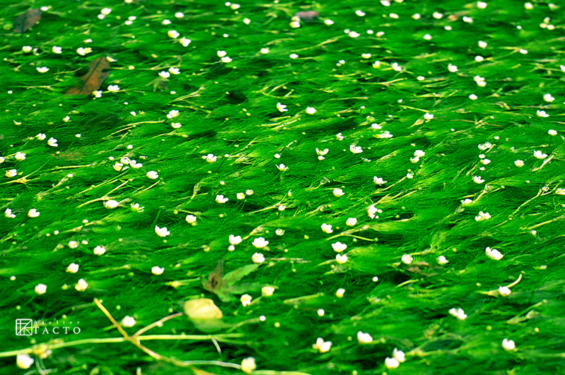 きれいな冷水を好むため、西日本でみられるところは少ないそうです。陽の光を受けて水中で白くきらめく梅花藻の花は、まるで天の川が地上に落っこちたかのようでした。